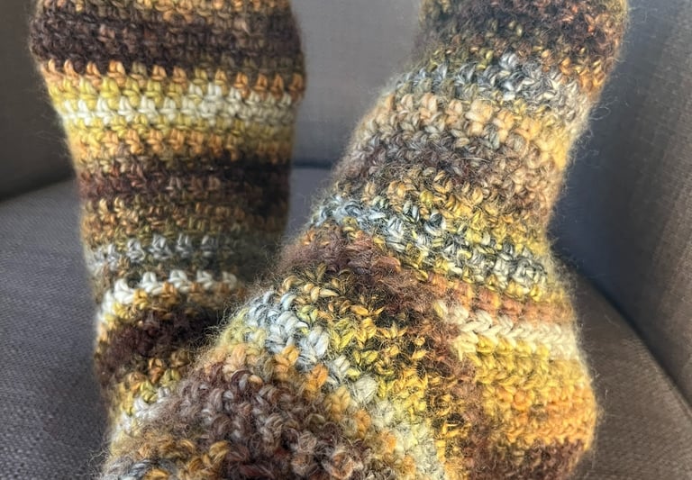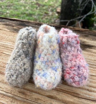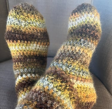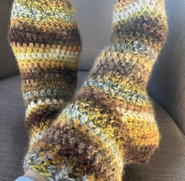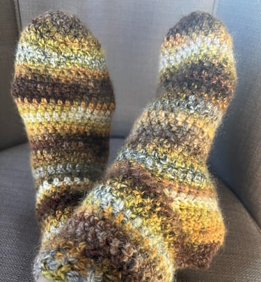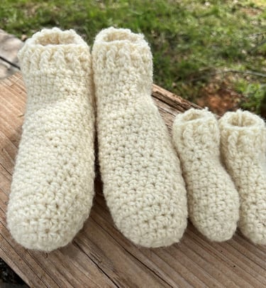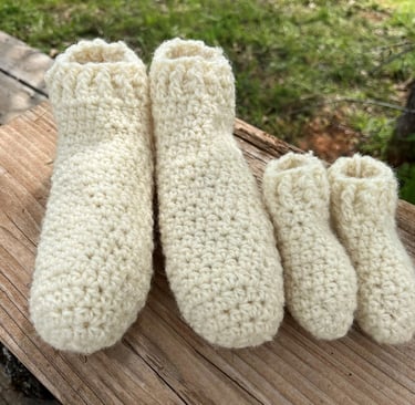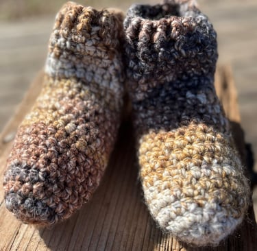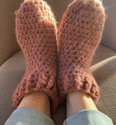 Soft, warm, and lovingly crocheted for your comfort. Keep your feet warm and cozy.